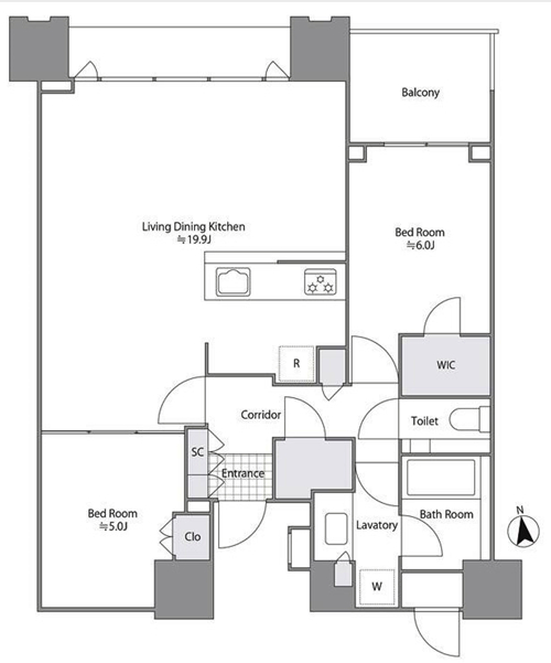 2015年10月建成的大規模塔型公寓,永久產權,符合新抗震標準。位于東京都中央區晴海3丁目,距都營大江戶線【勝どき】站徒步9分鐘。公寓樓地上52層付地下1層,24小時常駐管理,各層有防災倉庫及垃圾放置處,EAST棟1F有通往新橋,銀座方向的巴士,設有健身室,會議室,兒童室,圖書室,SPA;WEST棟設有派對室,觀景室及酒吧,客房等共享設施,附近徒步1分鐘就有超市及便利店,區立中小學校也均在步行15分鐘內。物件位于21層,可眺望東京晴空塔,2室1廳,完成室內裝修,玄關增加收納,客餐廳部分有地暖,新設照明,設有環保壁紙,具有隔熱性的復層玻璃,家具可相談,詳情歡迎咨詢。海外客戶可以申請日本銀行貸款購房,目前有兩種方式:1.需要在日本設立公司,以法人名義購買,貸款額度約60-70%、還款周期25-35年、貸款利率1.5%起。2.個人名義購買,海外客戶可以申請日本個人抵押貸款購房,不需要設立公司,貸款額度約50-60%,還款周期15-25年,貸款年齡65歲以內,貸款額度不能低于2000萬日元,貸款利率2.7%起。