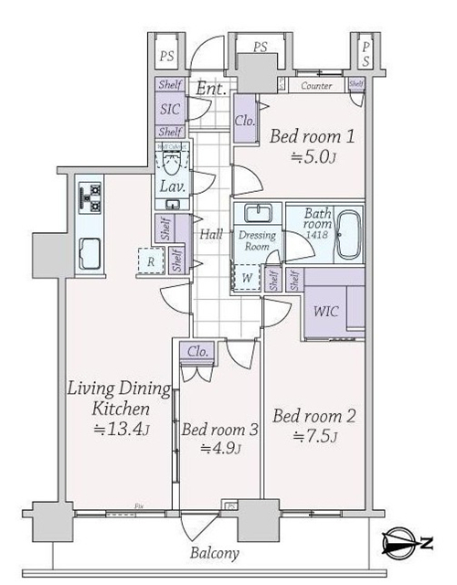 東京都港區3居室高層公寓