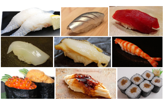 先是白身魚,比如鯛魚,比目魚等;其次是“亮皮魚”,比如小鰭、鯵魚等;然后是紅肉魚,如金槍魚等;接著是魷魚、貝類、甜蝦、海膽、鮭魚卵、鯖魚肚腩等;刷著秘制醬料的魚類壽司,如鰻魚等;最后是卷類壽司。