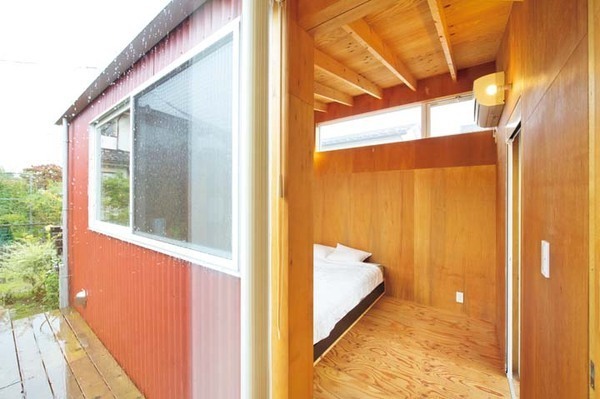 臥室和客廳由中庭相隔,動靜分區,互不打擾的設計簡單實用。而且這種半包圍半封閉的布局,一方面可以有效保護家人隱私,一方面又能充分接觸大自然,即使白天不拉窗簾也不會讓外人窺探到屋內的情況,可以放心的開窗通風和享受陽光的照耀。只有面向街道一側的墻壁使用了位置較高的窗戶,這也是為了增加光照又同時保護了隱私。