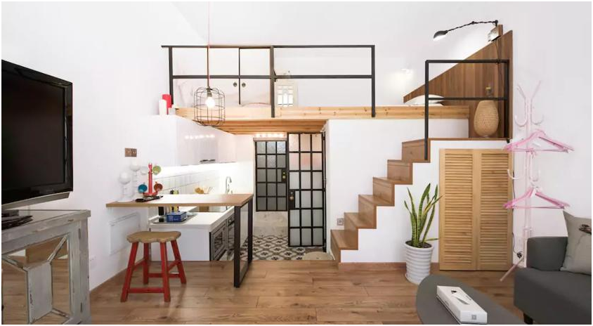第二代的樓梯是可移動的鐵樓梯,一般是放置在房間靠墻的一側(cè),這樣就可以節(jié)省樓梯空間,讓活動區(qū)域更大、使用更方便。