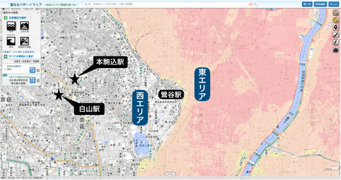 近年來,由于臺風引起的河流泛濫,有時會有發(fā)生水災的隱患。荒川泛濫時鶯谷的整個東部區(qū)域都是被預測會浸水“1m~5m”的危險區(qū)域。所以如果在鶯谷發(fā)現(xiàn)好房子時,盡可能租2~3層以上的房間會比較安全。地圖上粉色系的部分有浸水風險,以下是國土交通省發(fā)布的“危險地圖”。