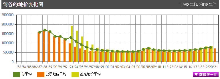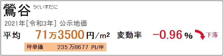 2021年鶯谷的公示地價為每平方米71.35萬日元,下跌0.96%,與往年相比變化不大。