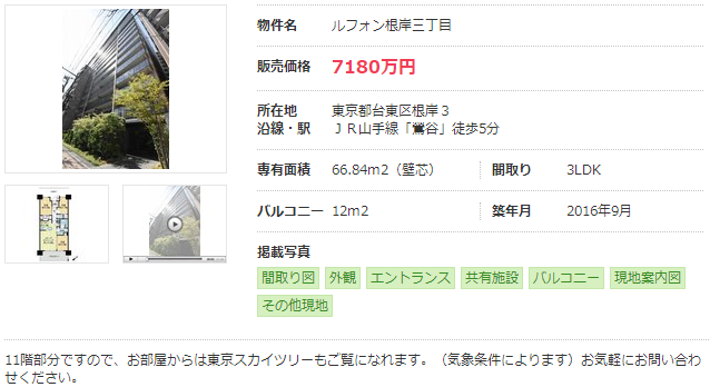 由此可見,很多人喜歡住在鶯谷的主要原因還是因為房租便宜、出行便利、生活方便。而且這里的房價相對也不貴。舉例來說,一間距鶯谷車站步行5分鐘、2016年筑的66.84平方米3LDK的二手房,市場售價為7180萬日元。