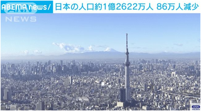根據日本總務省近日公布的最新日本總人口數據顯示,截至2020年10月1日,包括外國人在內,日本國內總人口為126,226,568人,首次跌出世界人口排名Top10,位列第11名。