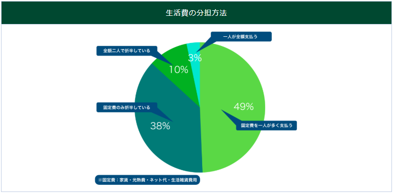 以上各年齡段的工資水平僅作為參考。不過也可以明顯看出,男性的收入隨著年齡的增長呈逐年上升的趨勢,而且收入明顯高于女性。那么兩口子過日子,家庭生活開銷的分擔(dān)比例又是怎樣的呢?