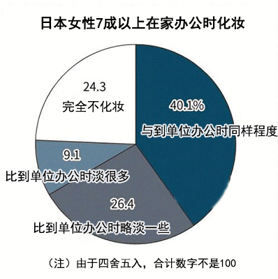 花王公司對日本20~59歲女性進行了調查。結果顯示,超過7成以上的女性在居家期間仍繼續化妝。