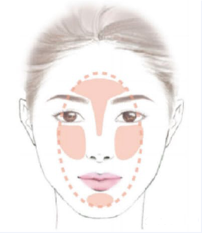“指南”指出,當立體的臉型出現在平面的鏡頭中時,就容易顯得臉大,所以在鋪粉底的時候,就不能像平時那樣滿臉打粉底,而是應該著重在額頭、鼻子、下巴和鼻子兩側打粉,增加臉部的立體感。