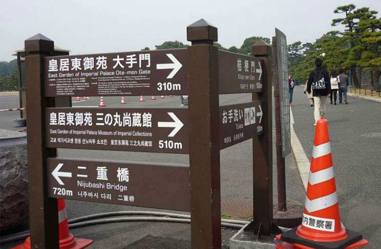 如果乘坐電車,可以從東京站的皇居出口出來,步行約10分鐘左右就可以到達皇居城外了。這里有“皇居外苑”及著名的“二重橋”,還有最佳賞櫻地的千鳥淵綠道。順著護城河稍走幾步,就可以到達進入皇居內城的城門之一的“大手門”,通過大手門的石橋便可進入東御苑了(進去之前需要開包安檢)。