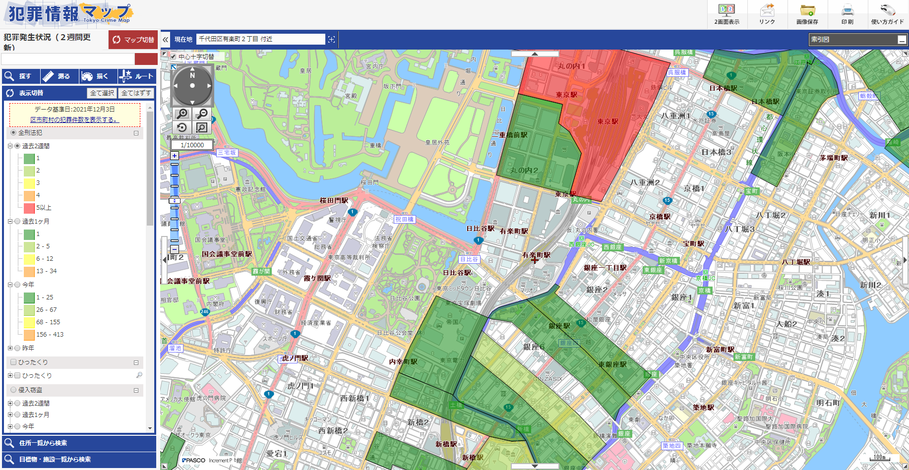 有樂町車站離皇居很近,周圍的安保情況良好。根據(jù)“犯罪信息地圖”可以看出,雖然這里是熱鬧的區(qū)域,但治安情況很好,比臨近的東京站及銀座等的治安情況都好。即使是一個人獨居生活,也可以安心居住。