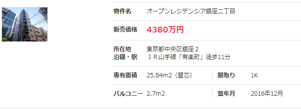 由于車站的商業(yè)設(shè)施眾多,想住在附近的話一般需要步行10分鐘以上且住宅房源極其稀少,目前沒有新建項目。距有樂町車站步行11分鐘,面積為25.84㎡,建于2016年12月的1K戶型的二手房,售價為4380萬日元。