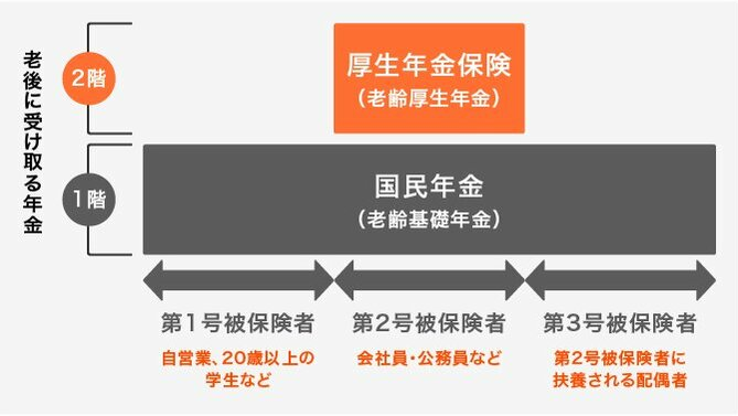 日本的公共養(yǎng)老金由兩部分組成,即國民養(yǎng)老金和厚生養(yǎng)老金。國民養(yǎng)老金是指住在日本國內(nèi)的所有20歲以上未滿60歲的人都有義務(wù)加入的養(yǎng)老金體系(包括外國人)。每個人將來能夠得到的養(yǎng)老金金額將根據(jù)保險繳納的期間決定。