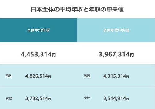 從“ 每月勤勞統計調查”中加入了最新的夏季獎金和年終獎金,計算出日本人平均年收為445萬3314日元(約合人民幣23.6萬元)和中位數年收入396萬7314萬日元(約合人民幣21萬元)。