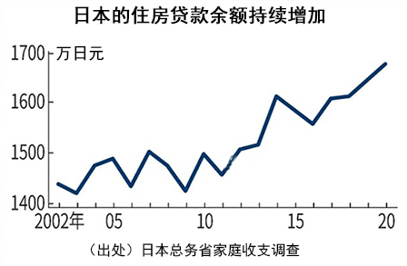 首先,日本自2016年引入負(fù)利率制度,在寬松的經(jīng)濟(jì)環(huán)境下,房貸利率不到1%,日本人購房的需求大幅增加,房屋持有率一路飆升達(dá)到61.2%,隨之而來的就是購房貸款額的不斷增加。日本需償還房貸的家庭的“凈負(fù)債金額(負(fù)債超過儲(chǔ)蓄的金額)”在過去約20年里增加了4成。家庭負(fù)債中高達(dá)95%為房貸,日本不斷上漲的房?jī)r(jià),特別是東京圈高昂的房?jī)r(jià),直接推高了家庭總負(fù)債。即使現(xiàn)在東京圈的房?jī)r(jià)已經(jīng)超過6000萬日元,但“實(shí)力派夫妻”貸款購房的熱情卻依然高漲,還是新建住宅中的購房主力軍。