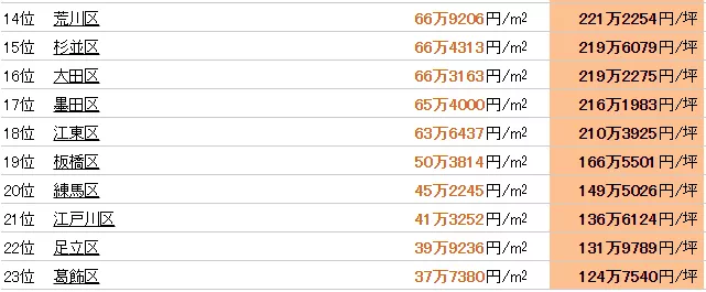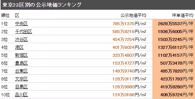 在居民收入方面,下町區是排在東京23區的后幾位了。排名第一位的港區和排名最后的足立區,平均年薪相差三倍左右,感覺貧富差距很大,這也反應在地價上。東京地價最貴的地方在中央區,每平方米高達約795萬日元;最便宜的地方在葛飾區,每平方米僅約38萬日元。而且都心土地資源有限,各大開發商就在下町區開發了大量新建公寓項目。和都心動輒上億日元的二手公寓相比,工薪家庭更傾向于5千萬日元左右的預算來購買新建公寓了,這里是普通老百姓也能買得起房的地方。