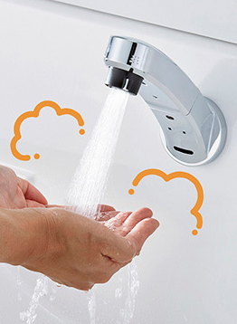 兼具淋浴功能的非接觸感應(yīng)式水龍頭“navish”,只要把手放在水龍頭的感應(yīng)區(qū),水龍頭就能自動(dòng)出水,這樣打了洗手液的泡沫和污垢就不會(huì)附著在水龍頭周圍。另一方面還可以避免水一直流出造成浪費(fèi),做到節(jié)約用水。而轉(zhuǎn)動(dòng)把手還能切換成手動(dòng)操作,當(dāng)您希望連續(xù)出水時(shí)的切換方便自如。