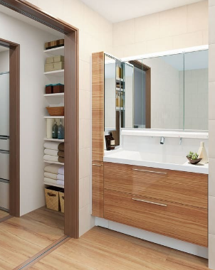 在日本,家務(wù)事一般都由主婦來承擔(dān),所以洗面臺(tái)是否容易清理,是主婦們最在意的事情。在日本,一體式的洗面臺(tái)尤為受到大家的喜愛,這跟好打理也密不可分的。而且對(duì)于愛美的女性來說,洗面臺(tái)上面怎么能少了一面大鏡子呢?