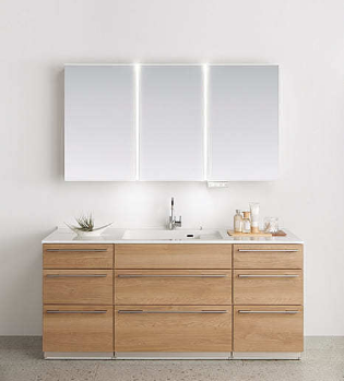 日本洗面臺(tái)的材質(zhì)中,水盆的材質(zhì)多用于人造大理石、陶瓷、有機(jī)玻璃等,鏡箱則使用了耐水性強(qiáng)防污性強(qiáng)的材質(zhì),而收納柜多使用不銹鋼、“無垢之木”等材質(zhì),都十分注重材質(zhì)的耐磨、耐水、耐用、耐菌、耐污垢、好清理等的特點(diǎn)。