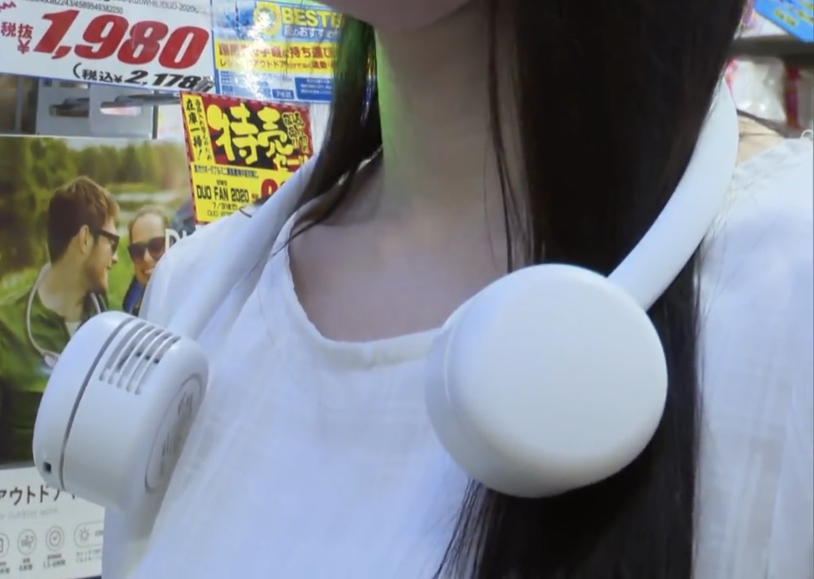 在日本大街上,常常可以看到人們手持一個(gè)小電風(fēng)扇,或者是脖子上掛著一個(gè)迷你電風(fēng)扇,這樣也可以得到些許涼風(fēng)的安慰。