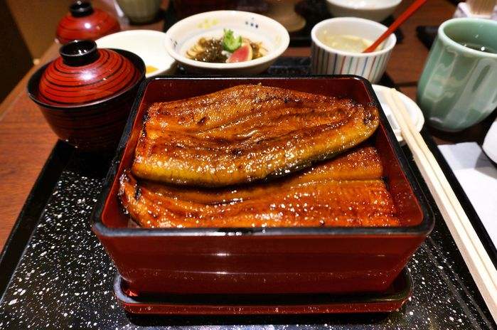 鰻魚飯一般可分為兩種——鰻丼和鰻重。鰻丼泛指放在圓形瓷碗中的鰻魚蓋飯,比較大眾化;而鰻重用到的器具更高級,日語中的“重”字就是指外面黑色、內里紅色,用來盛載食物的方形漆盒。鰻重一般搭配鰻魚肝湯,腌菜,白蘿卜泥食用。有些鰻魚專門店還以“松”、“竹”、“梅”來劃分,松賣最貴,鰻魚分量最多,竹次之,梅的鰻魚分量最少。