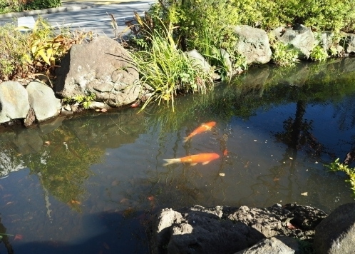 長椅、錦鯉、石頭、小孩子,綠色和溪流的小徑讓人賞心悅目,是人與自然完美融合的宜居之所。