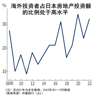 根據仲量聯行(JLL)的統計數據顯示,海外投資客在日本房地產的投資額2022年4到9月超過5000億日元(約合人民幣258億元),比上年同期增加約80%。