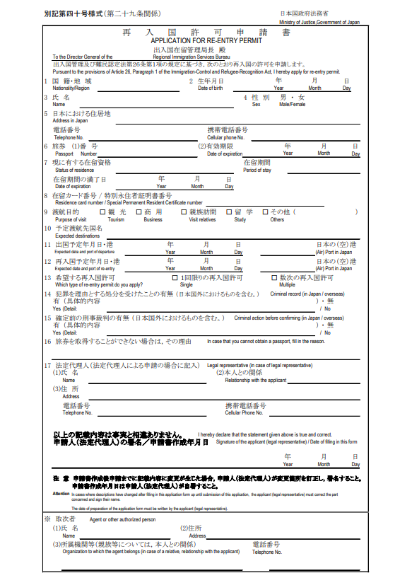 長期再入國許可又分為單次及多次許可兩種,最長有效期為5年。這種再入國許可需要到出入國在留管理局辦理,目前收費標準為單次3000日元、多次6000日元。