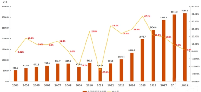 日本自從確定了“旅游立國”的目標后,在安倍政府積極推動下,訪日外國游客從2012年的836萬人猛增到2019年的3188.21萬。其中,來自中國大陸及港澳臺地區的訪日游客數量高達1677.56萬人(中國大陸游客為959.43萬人,中國臺灣訪日人數為489.06萬人,中國香港訪日客為229.07萬人),占全體訪日外國人的52.6%,成為撐起日本旅游業的中堅力量。