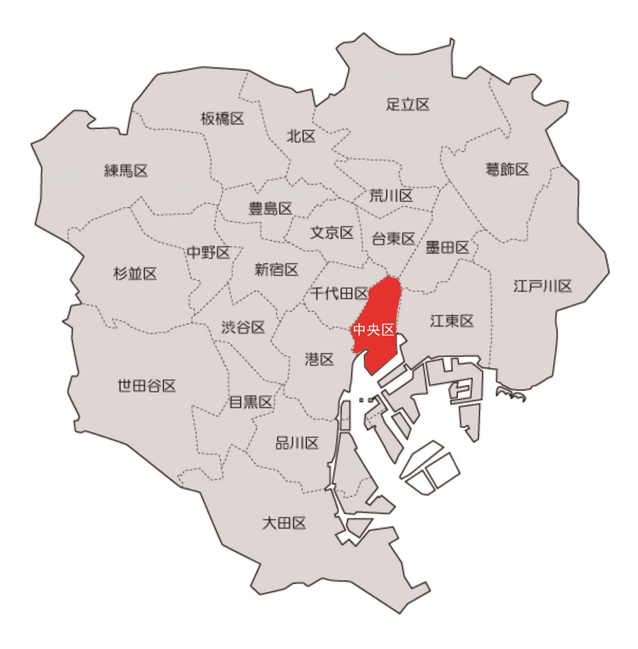 中央?yún)^(qū)位于東京23區(qū)的正中央位置。中央?yún)^(qū)不僅地理位置處于東京的中心地,更是日本經(jīng)濟(jì)、信息、商業(yè)等的中心。著名的日本銀行、東京證券交易所等日本經(jīng)濟(jì)核心都位于中央?yún)^(qū)。包括銀座、大型布莊與百貨公司總社聚集的日本橋、及以魚貨市場聞名的筑地皆位于本區(qū)范圍之內(nèi)。本區(qū)商業(yè)強(qiáng)烈,高樓林立,住宅方面以高層公寓與團(tuán)地等集合住宅為主,獨(dú)戶低層住宅或低層分租公寓較為少見。道路呈現(xiàn)棋盤狀,與他區(qū)相比較為整齊。隨著勝どき、晴海地區(qū)地區(qū)的住宅開發(fā)建設(shè)推進(jìn),近年中央?yún)^(qū)吸引了一批30-40歲的人口入住。值得一提的是原本2020年奧運(yùn)村就設(shè)定在晴海,由于該區(qū)位于東京中心位置,交通十分便捷,到神奈川,埼玉和千葉等地區(qū)的交通路線四通八達(dá)。