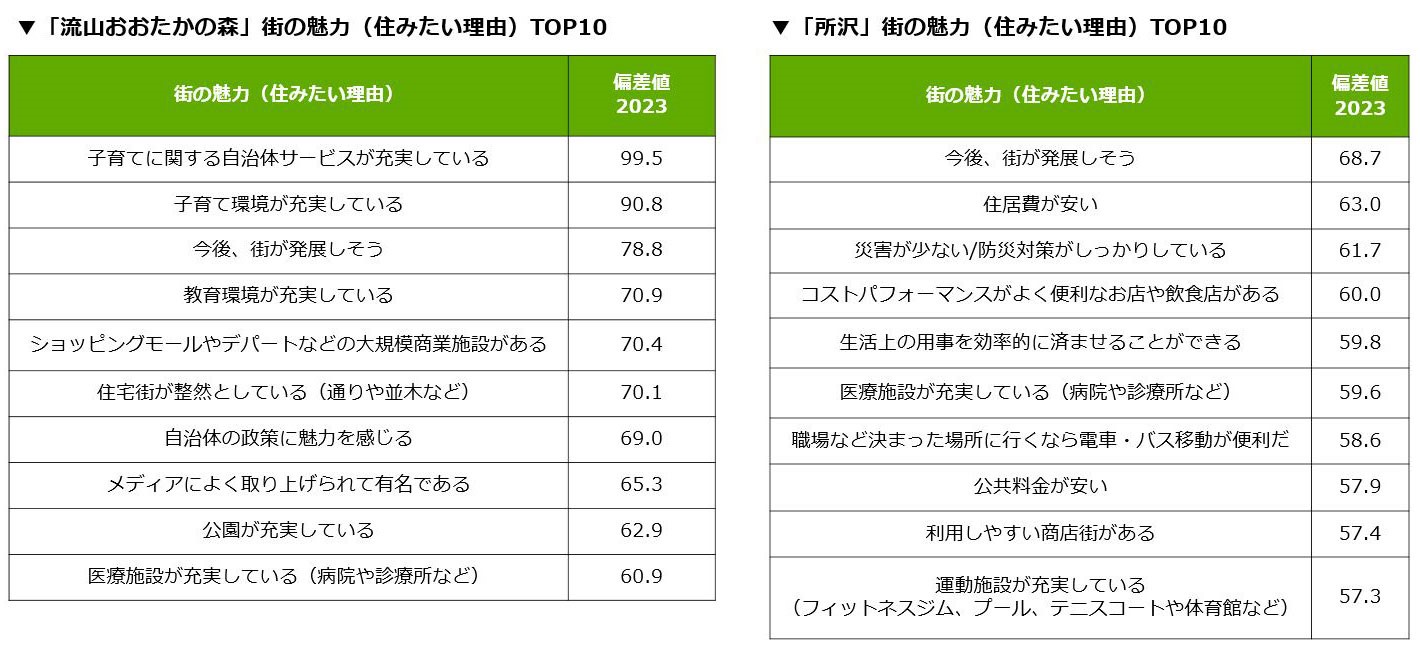 在千葉縣的排名中,“流山大高榮”排名第一,超過了第二名的舞浜,第三名的船橋,第四名的柏和第五名的千葉。通過查看其前十名的魅力項目,很明顯,“育兒”和“教育環境”的高度受到關注。