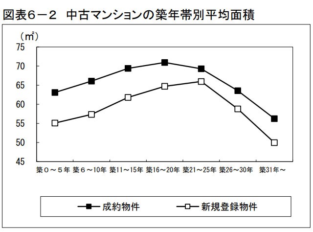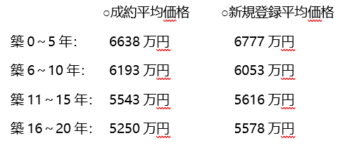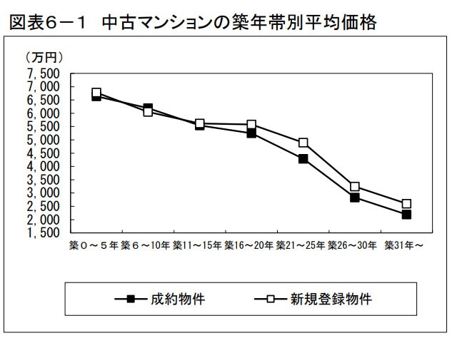 在二手公寓市場上,也有“按建筑年份分類的平均價格”數據。實際上,如果查看這個數據,就會發現在建筑年份不超過20年的范圍內,新房源和成交房源的平均價格非常接近。