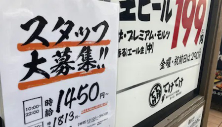 在日本,服務(wù)行業(yè)擁有大批的兼職工作人員,東京最低時(shí)薪標(biāo)準(zhǔn)為1072日元/小時(shí),然而不增加支付的時(shí)薪標(biāo)準(zhǔn),就很難找到愿意兼職的人員。