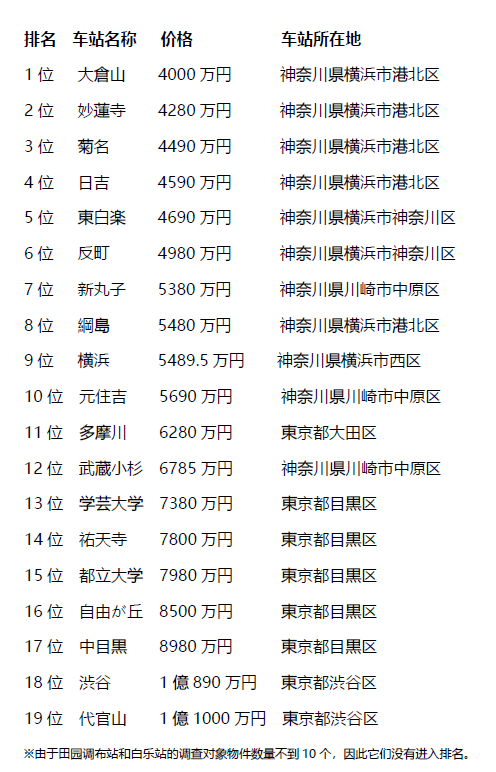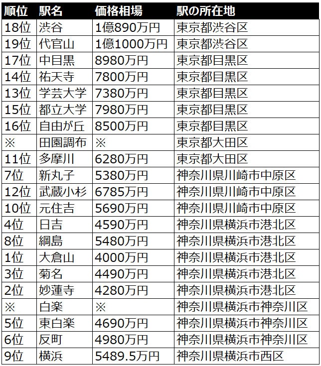 "東急東橫線"中古公寓價(jià)格相對(duì)較低的車站排名