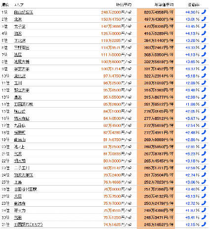 我們發布的東京都世田谷區土地價格的市場行情,是基于公示地價和基準地價的標準地/基準地數據,由我們獨立計算平均值和變動率,并按照東京都世田谷區在全日本市區町村中的排名進行統計。