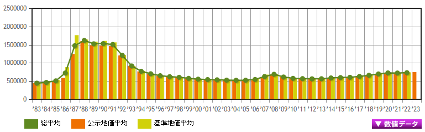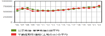 在實際進行的世田谷區房地產交易中,日本國土交通省僅計算了不包括建筑物(例如大樓或房屋)的土地銷售交易的平均價格。由于這些是來自實際房地產交易的價格,因此它們是接近市場價格的數字。在2022年(令和4年)第一季度中,世田谷區的土地按每平方米計算的交易價格為79萬3333日元/平方米,按每坪計算的交易價格為262萬2589日元/坪,與去年相比上漲了12.93%。這個平均交易價格與公示地價和基準地價的平均值相比,有一個+8.46%的差距。
