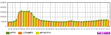 在實際進行的杉并區房地產交易中,日本國土交通省僅計算了不包括建筑物(例如大樓或房屋)的土地銷售交易的平均價格。由于這些是來自實際房地產交易的價格,因此它們是更接近市場價格的數字。在2022年(令和4年)第一季度中,杉并區的土地交易價格按每平方米計算為58萬7894日元/平方米,按每坪計算為194萬3453日元/坪,與去年相比下降了-3.85%。這個平均交易價格與公示地價和基準地價的平均值相比,有一個-14.68%的差距。