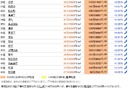 我們發布的東京都板橋區土地價格的市場行情,是基于公示地價和基準地價的標準地/基準地數據,由我們獨立計算平均值和變動率,并按照東京都板橋區在全日本市區町村中的排名進行統計。