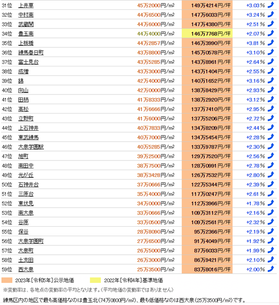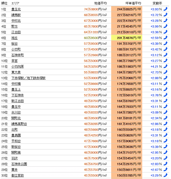 練馬區域地價排名