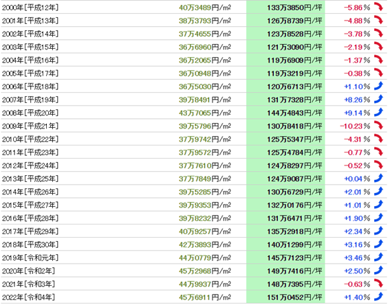 要進行東京都練馬區的土地交易,必須參考土地市場行情,根據該物業的供需關系、市場趨勢等因素來確定土地的買賣價格。土地價格的市場行情可以參考日本國土交通省公布的公示地價、東京都廳公布的基準地價、國稅局公布的路線價,以及每個季度公布的房地產交易價格。請注意,這些數字與實際房地產交易的市場價格可能略有不同。