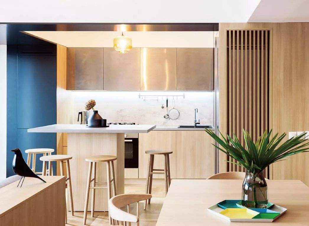 開放式的廚房也很受青睞。廚房與客廳的墻壁不見了,空間變大了,視野更寬闊了。有孩子的媽媽可以一邊在廚房準備飯菜,一邊照顧著客廳玩耍的小孩;或者一邊看著電視,一邊學著烹飪新的菜肴。最主要的,新型的廚房設備,可以有效減少做飯時的油煙,讓廚房保持清潔,主婦們也少了很多清理廚房空間的勞作。