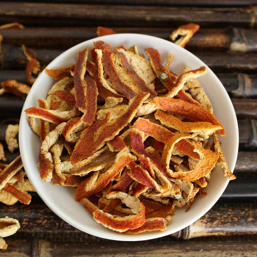 橙皮:取一塊橙皮,將黃色部分切成3厘米見方的薄片后,再切成細絲。