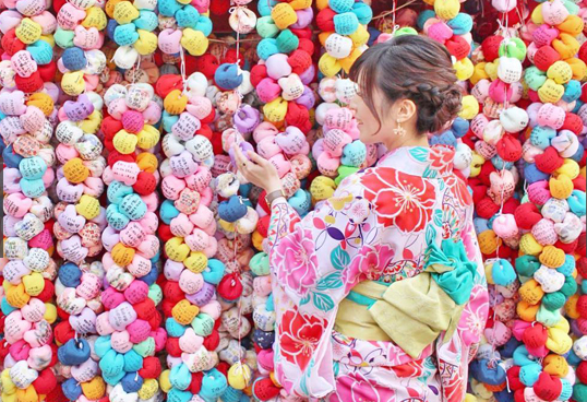 八坂庚申堂位于祇園區(qū)域,這里的特別之處在于,用于許愿的不是繪馬,而是五顏六色名為“くくり猿”的“沙包”。在這里自拍,百分百能滿足少女心。