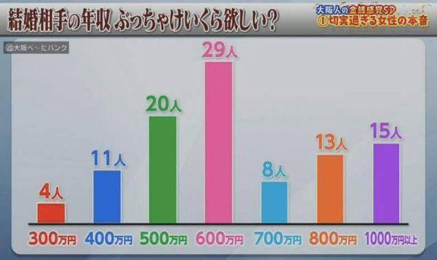2020年已經到來,根據街頭采訪的結果顯示,日本女性對未來丈夫的年薪要求也提高了,而原因也是五花八門。