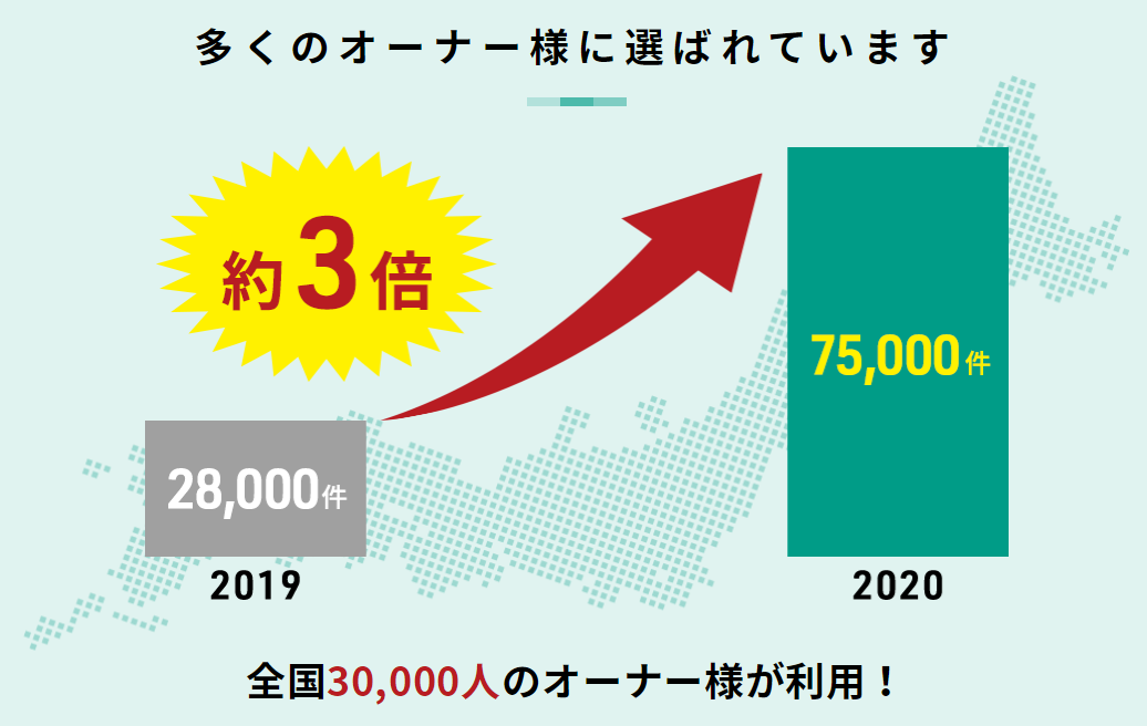 除此以外,管理公司還會提供募集租客的服務,從而更有效的保障房東利益。可以看出房東加入管理公司后,可以享受到集房屋管理、出租、家宅保證、孤獨死保險于一身的全方位服務,因此選擇這項服務的房東急速增加,2020年比2019年的需求幾乎增長了3倍。這應該是現今日本社會解決高齡老人租房、防范孤獨死問題的最先進的服務了吧。