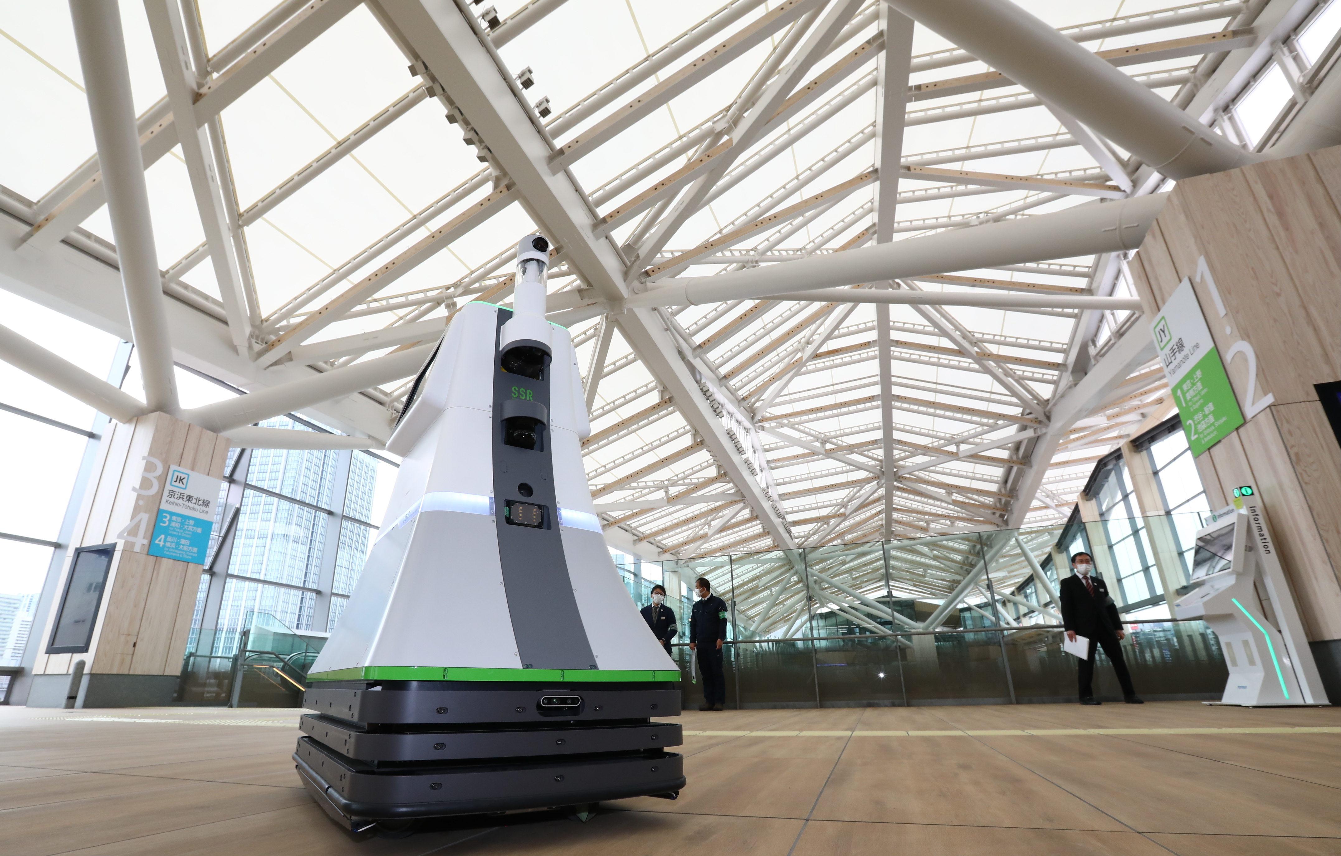 站內安保主要由警備機器人承擔,可通過面部識別系統(tǒng)尋人或查找通緝犯等,如果發(fā)現持有白色手杖的視覺障礙者或行為異常者等時,機器人還將自動通知工作人員前往確認是否需要幫助。
