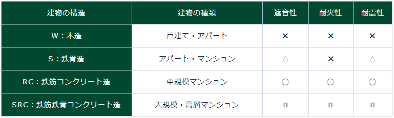 獨棟公寓通常有木造、鋼結構、鋼筋混凝土、鋼筋鐵骨混凝土造等幾種類型,因為材質的不同,性能有所不同,售價及投資回報也有所不同。