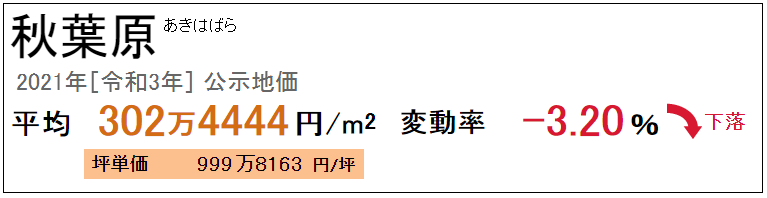 秋葉原主要是熱鬧的商業街區,2019年10月“梅茨酒店秋葉原”在JR東日本秋葉原大廈舊址上重建并開業,當年公布的地價一度上漲近10%。2020年的地價持續上漲超過6%,2021年公布的平均地價是每平方米302萬日元(約合18萬人民幣),因受新冠疫情的影響,地價相較于前一年下降了3.20%。雖然如此,但由于土地供應量嚴重不足,這里幾乎沒有新建公寓上市。但秋葉原的二手房交易較活躍,比如距秋葉原車站步行6分鐘,建筑年代為2017年,套內面積40.5平方米的二手公寓房,售價為5170萬日元(約合310萬人民幣)。1R-3LDK的公寓月租金約為9萬日元-25萬日元,區域內單身人士較多,出租公寓的空置率不到5%。
