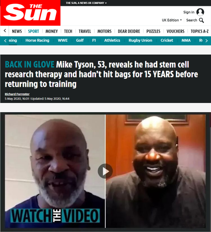 雖然泰森沒有透露干細胞治療的具體內容,但從他目前的身體狀況來看,干細胞治療讓他對重返拳壇充滿了信心。由此可見,在未來臨床醫學領域,干細胞治療將占有非常重要的一席。