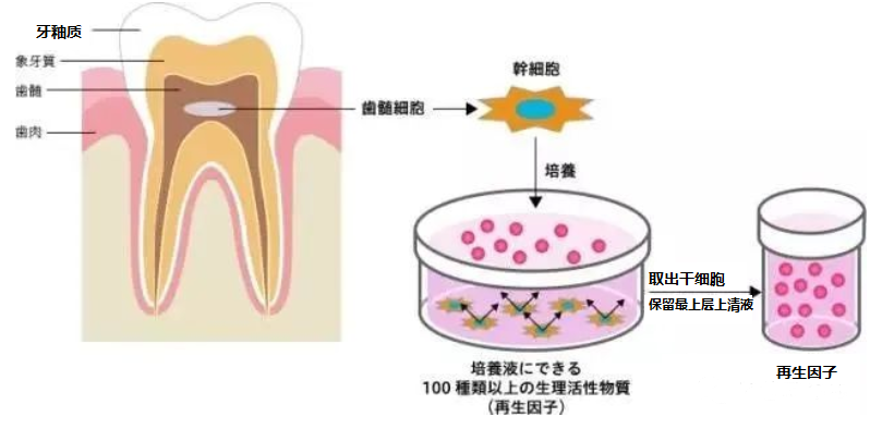 在需要牙髓干細(xì)胞進(jìn)行治療時(shí),會(huì)被取出并恢復(fù)到平常溫度,蘇醒沉睡的牙髓干細(xì)胞再次進(jìn)行“增殖”培養(yǎng),然后最大限度提取干細(xì)胞培養(yǎng)中產(chǎn)生的各種生長(zhǎng)因子,只保留上清液用做抗衰治療使用。
